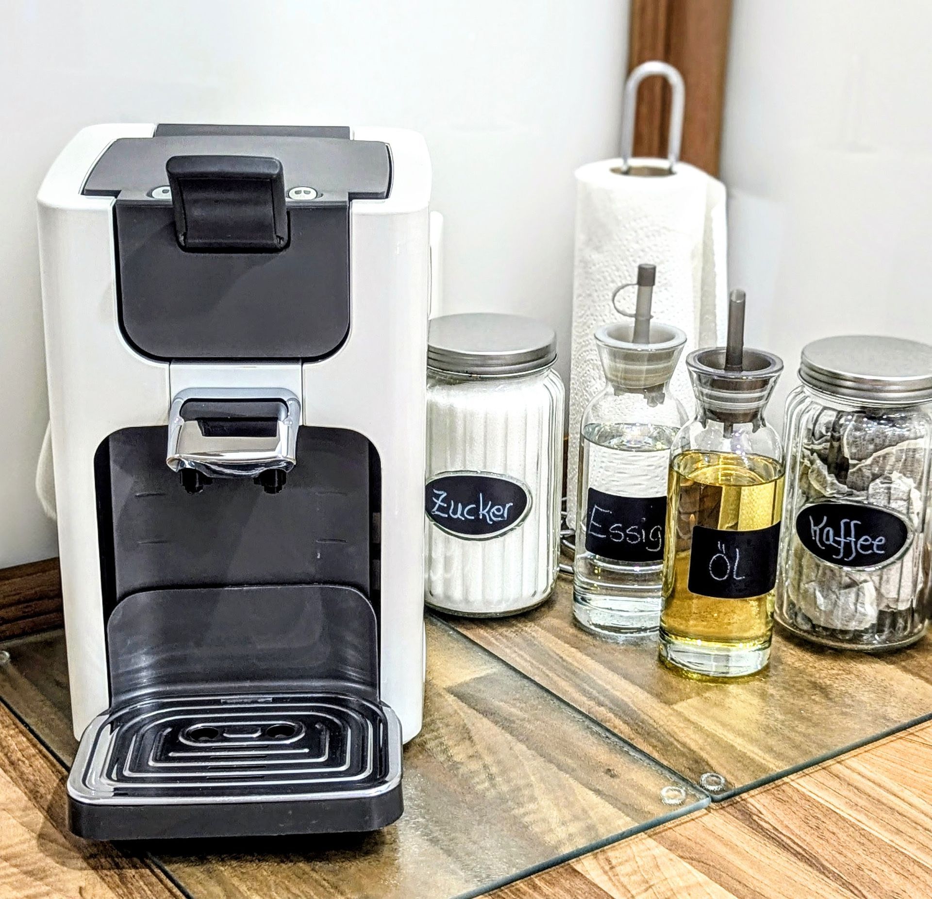 Die große Küche mit Esszimmer bietet ausreichend Platz. Die Küche ist komplett ausgestattet von Töpfe, Geschirr, Kochutensilien, Kaffeepadmaschine, Kaffeepads, Wasserkocher, Mikrowelle, grosse Spülmaschine, Herd mit Backofen , Kühl- Gefrierkombi, Tee, Spül-und Putzmittel bis Spülmaschinenmittel, Geschirrtücher und vielem mehr.